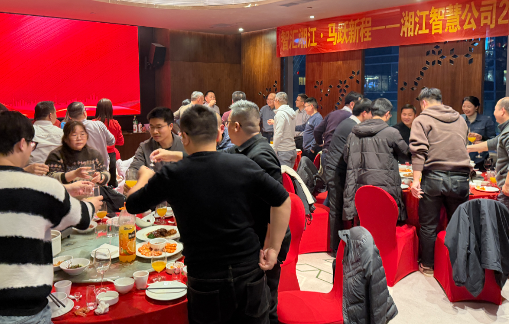 岁序更替,华章日新。在丙午马年新春即将来临之际,为凝聚团队力量,感恩一路同行,2026 年 2 月 12 日,湖南湘江智慧科技股份有限公司 2026 年团拜宴会在梅溪湖金茂豪华精选酒店隆重召开。公司领导、全体员工及特邀嘉宾齐聚一堂,共话过往辉煌,同绘未来蓝图。